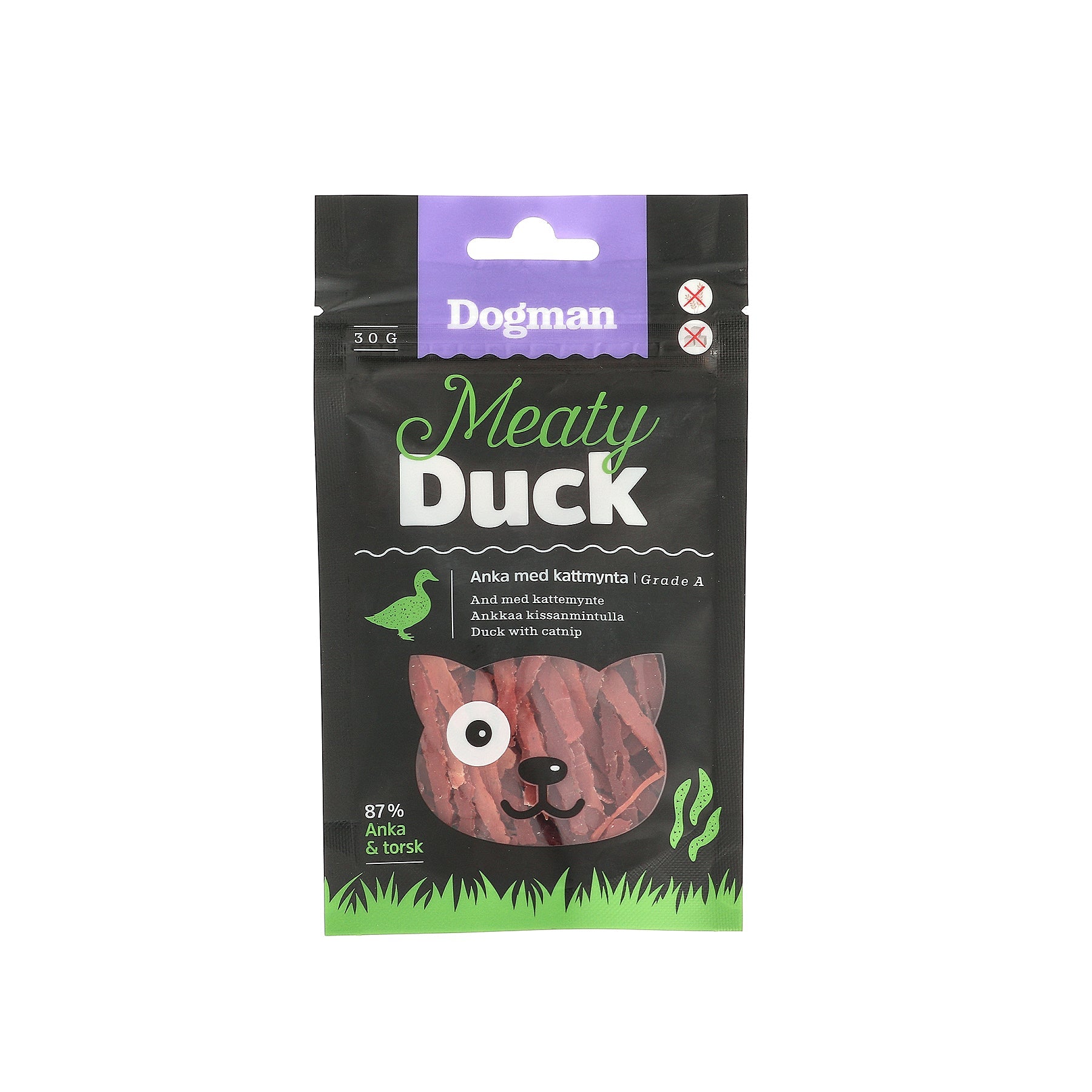 Lyxigt kattgodis med hög kötthalt av smaskig anka och läcker torsk. Dessutom med kattens favorit - oemotståndlig kattmynta! Utan tillsatt socker och spannmål. Ges som belöning vid sidan av en balanserad kost. Storlek: 30g .