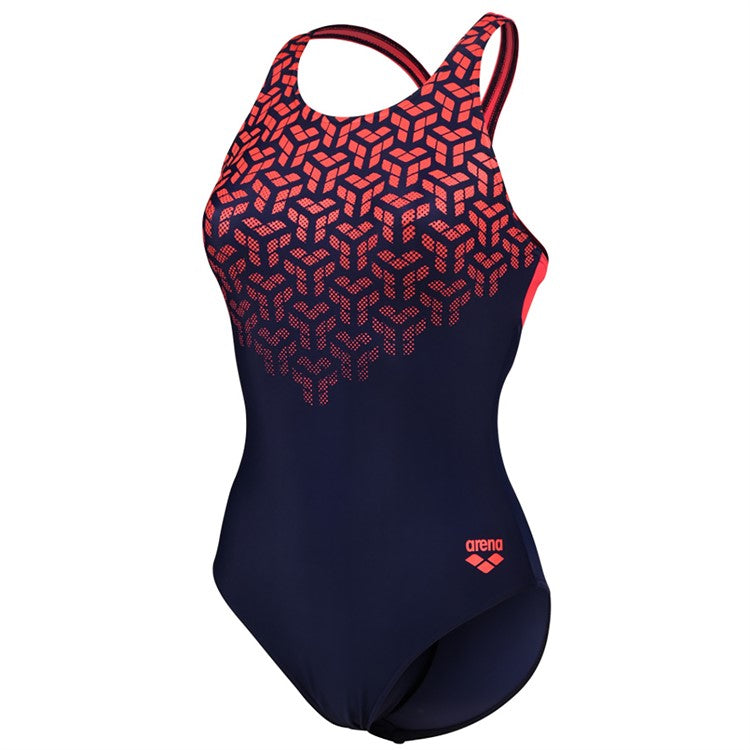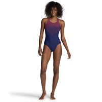 Arena Dam Kikko V Baddräkt V Baksida Grafisk Marinblå-Fluo Röd