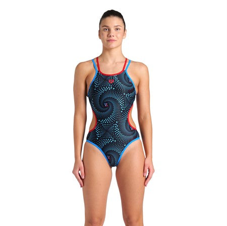 Vi arbetade ihop med elitsimmare för att skapa en exklusiv 2024-kollektion. Fireflow är hur de beskriver sin sinnesstämning när de tävlar. Eld representerar passion och uthållighet, och flow symboliserar ett lugnt, zen-liknande fokus. Dekorerad med kollektionens unika tryck är vår arena One Fireflow Double Cross Back Swimsuit en fängslande enhet för träning och frekvent simning.