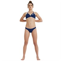 Håll din träning fräsch och rolig med en bikinistil utformad för intensiv simning. Vår Team Swim Bottom är skuren av ett tyg som är mycket motståndskraftigt mot klor för att bibehålla formen och hålla färgerna levande. Denna atletiska design sitter lågt på höfterna och är fodrad framtill för att förhindra genomskinlighet. Gå för en koordinerad look genom att bära den matchande toppen.