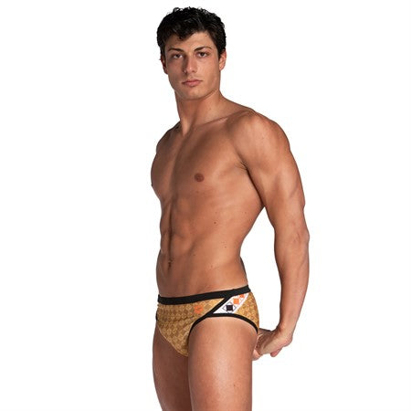 Guld som representerar våra prestationer genom åren, orange vårt ikoniska arv och svart fångar vår styrka och tidlösa stil. Femtio år senare är vi fortfarande dedikerade till att göra din vattensportupplevelse till den bästa någonsin. Dessa Low Waist Short är perfekt för tävlingssimmare och motionssimmare som simmar ofta i poolen. Denna design är dekorerad med ett motiv inspirerat av den ursprungliga logotypen från 1973 för att fira arenas femtio år av passion för vattensporter.