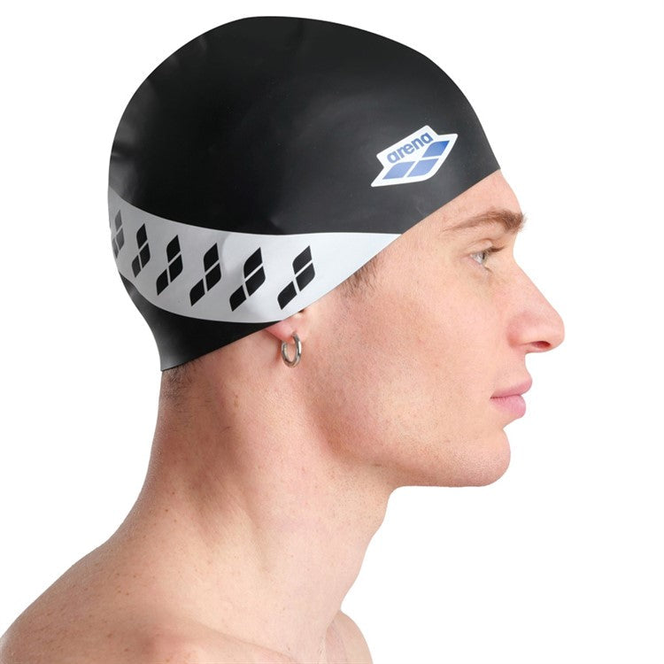 Utsmyckad med våra logotyper från 70-talet, denna Team Stripe silikonbadmössa förkroppsligar den atletiska atmosfären från en era av fantastiska simmare. Oavsett om intensiv träning eller konditions sim är ditt spel, lägg till lite känsla till ditt simsätt med detta retro-huvudskydd.