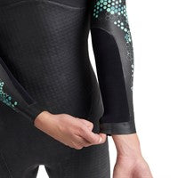 Det är dags att ta ditt öppna vatten sim till en högre nivå! Denna eleganta Powerskin Storm våtdräkt för kvinnor är den senaste utvecklingen av vår populära Carbone våtdräkt och är resultatet av 50 års forskning inom hydrodynamik. Den designades av idrottare för idrottare för att garantera perfekt flytförmåga kombinerat med högsta komfort, flexibilitet och värmeisolering. Vår Storm våtdräkt är gjord av 100 % kalksten Yamamoto SCS neopren, en typ av neopren tillverkad av olja med minskad miljöpåverkan. De olika tjocklekarna på neopren säkerställer maximal rörelsefrihet vid simning och optimal flytförmåga. arena kolfiberteknologi inbyggd i våtdräkten håller din kropp i en idealisk position i vattnet, medan den nya halsen är designad för att ge maximal komfort och inget skav. Den speciella dubbelskiktskonstruktionen på underarmarna möjliggör ett effektivare grepp under arm slaget och en bättre känsla i vattnet. Tack vare den tunnare och mycket elastiska neoprenen runt handleder och vrister kan du snabbt ta av och på våtdräkten.