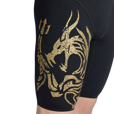 De här jammers är en limited edition och finns i en begränsad upplaga. Tillverkad av ett hållbart tekniskt tyg, delvis tillverkat av återvunnet material. Kan utstå hundratals timmars exponering för klorerat vatten. Avslutad med frontfoder, invändig dragsko. och mäter 45 cm. Draken är en symbol för makt, andlighet och mod, varför Gregorio Paltrinieri identifierar sig starkt med denna mytomspunna varelse. Inspirerade av den italienska simmaren är våra Signatur Dragon Swim Jammers i svart utsmyckade med en gulddrake.