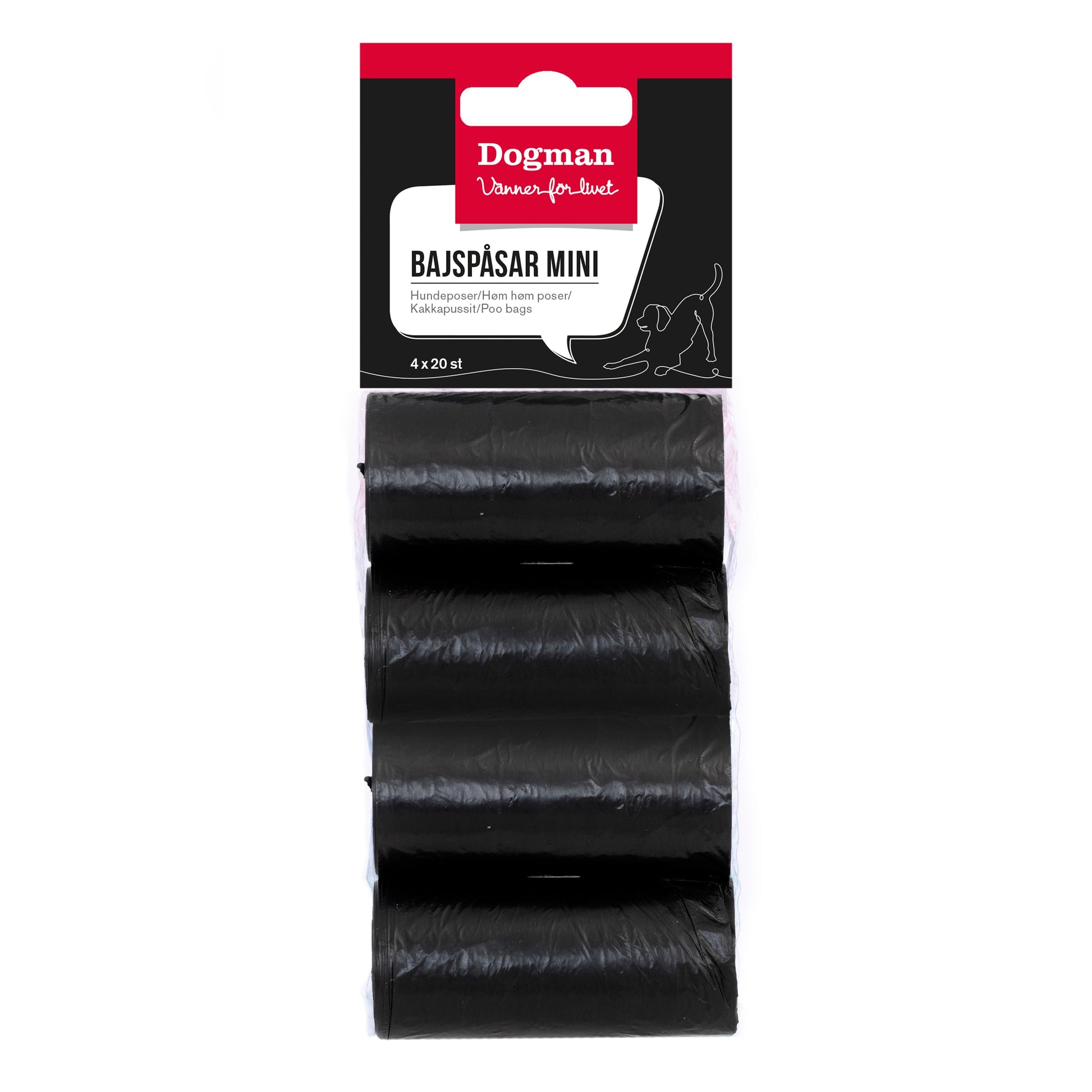 Svarta bajspåsar av tunn men samtidigt hållbar kvalitet. Perfekta att ha med sig i fickan eller i bajspåsehållarna av mjuk silikon. Utan handtag. Kommer i 4x20-pack. 22x32cm. .