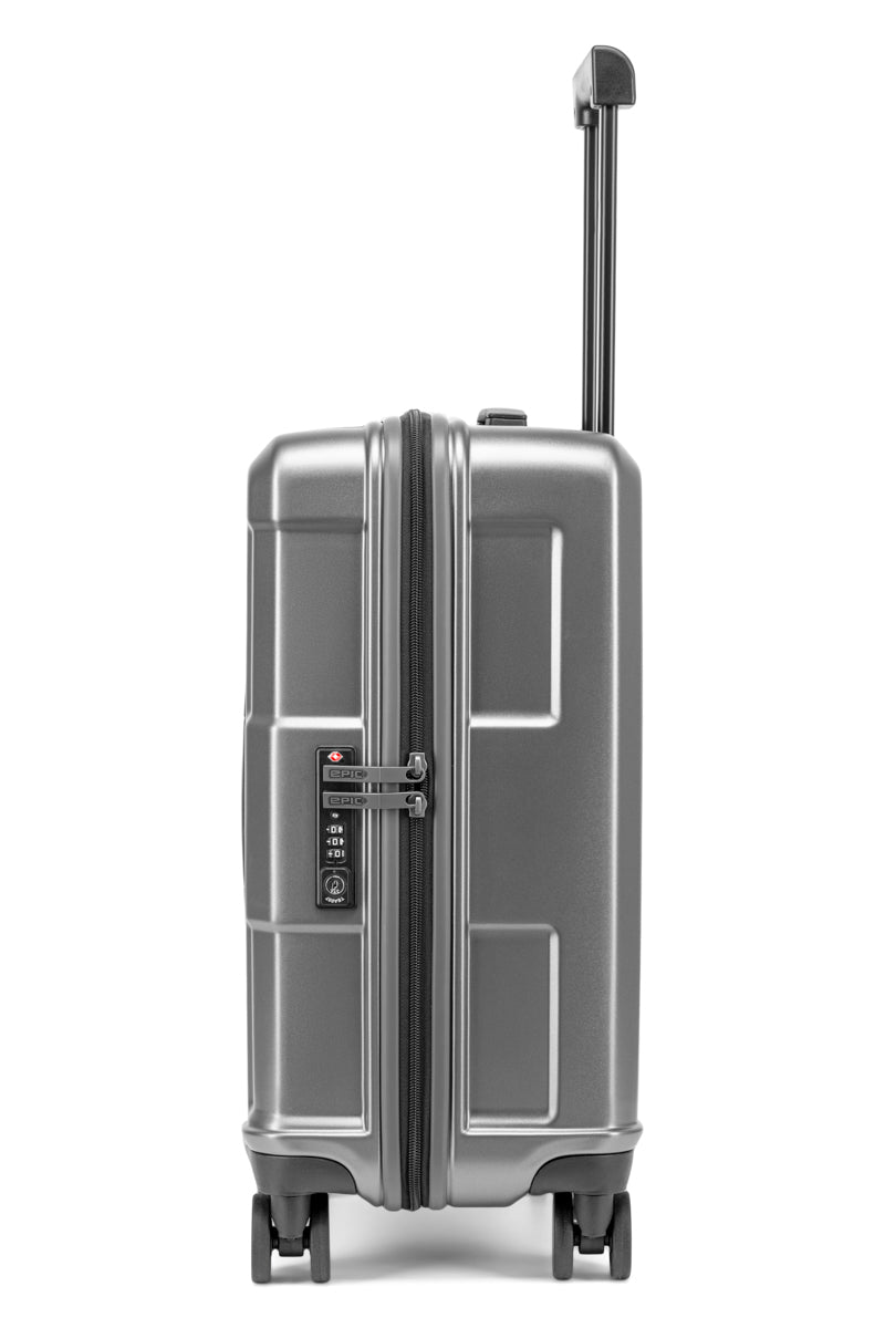 Crate-serien är tillverkad i EPIC DuraLITE+™, ett banbrytande kompositmaterial som kombinerar styrka, flexibilitet och låg vikt. De upphöjda och sänkta ytorna på väskans skal förstärker konstruktionen och ökar strukturell stabilitet, vilket gör väskan både tålig och elegant.