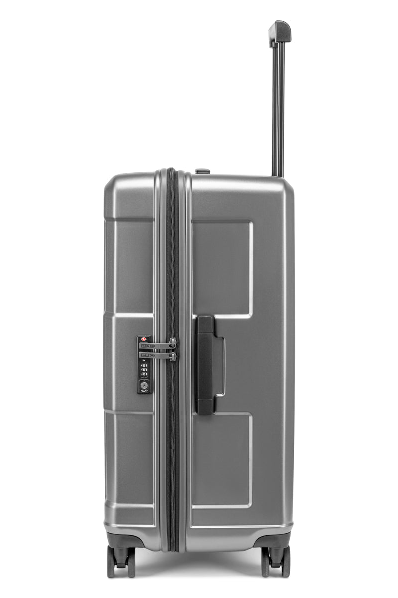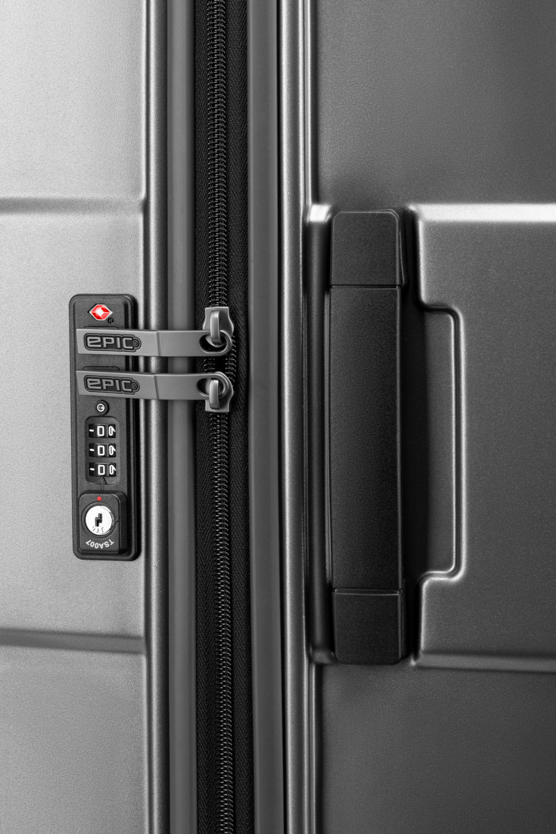 Resväskans skal är tillverkat i EPIC DuraLITE+™, ett avancerat kompositmaterial som kombinerar styrka, flexibilitet och låg vikt. De upphöjda och sänkta ytorna förstärker väskans struktur, vilket ger extra hållbarhet och skydd – samtidigt som den behåller en elegant, modern design.