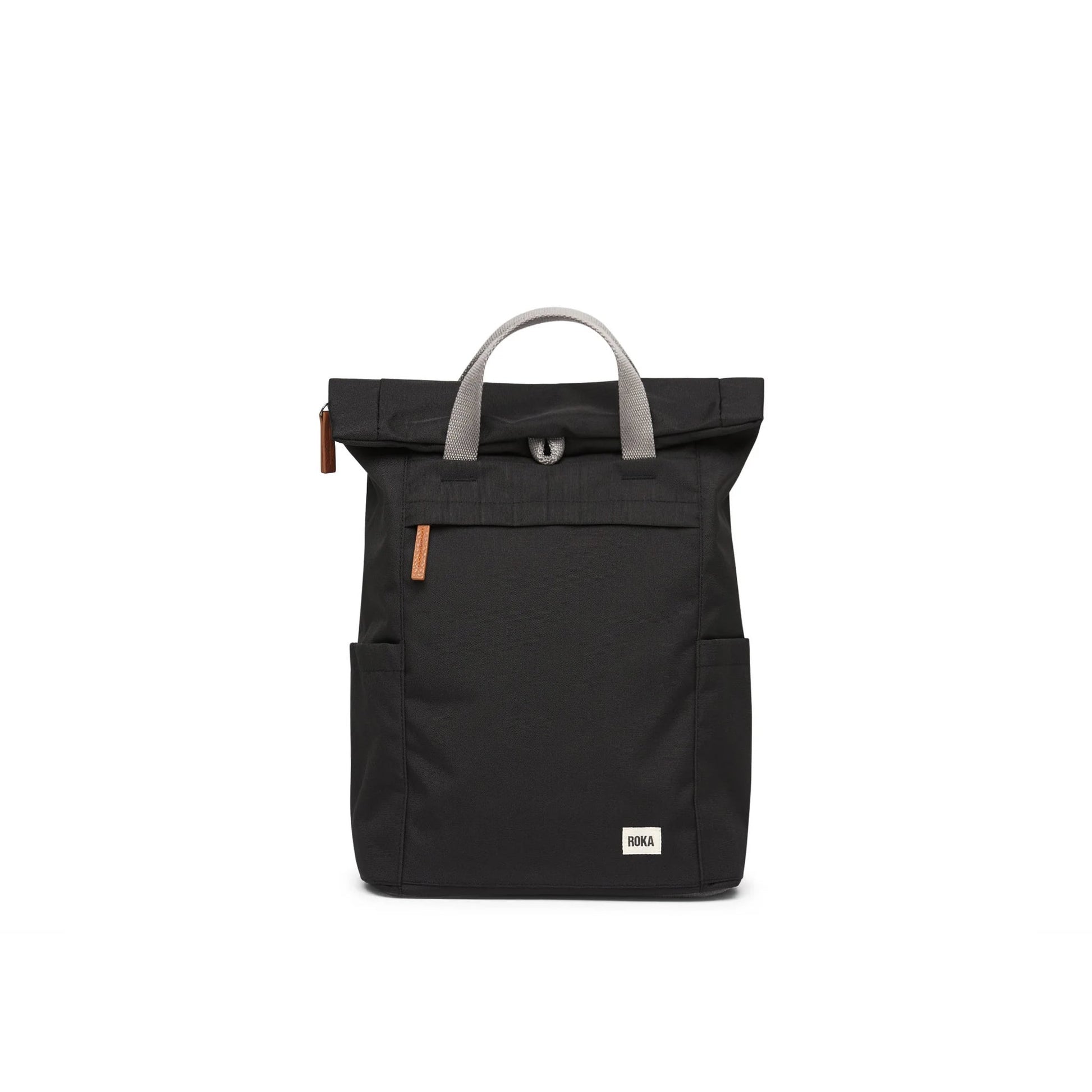 Finchley från ROKA London är en stilren ryggsäck med rullöppning som kombinerar modern design, funktionalitet och hållbarhet. Den är tillverkad av återvunnen PET (rPET) – motsvarande flera plastflaskor – vilket gör den både miljövänlig, slitstark och vattenavvisande. Den matta canvastexturen ger ett elegant och tidlöst uttryck som passar lika bra till vardag, jobb och resor.