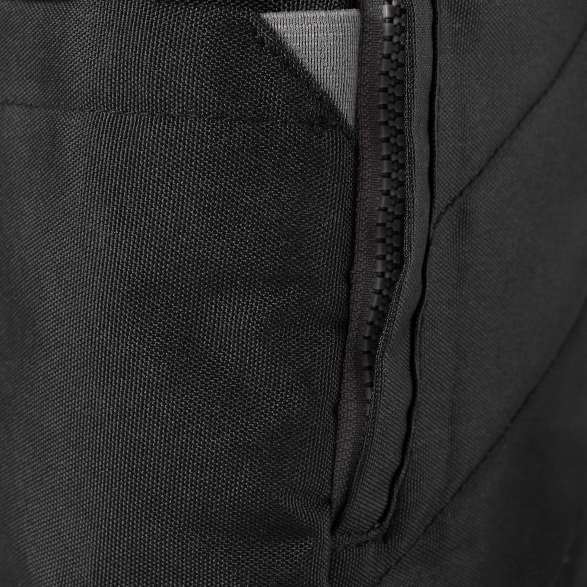 Ryggsäcken har en rymlig insida med vadderad ficka för surfplatta eller mindre laptop, samt sidofickor för vattenflaska eller termos. På framsidan finns en dold dragkedjeficka för snabb åtkomst till det viktigaste, och på baksidan en säkerhetsficka för värdesaker som pass eller plånbok.