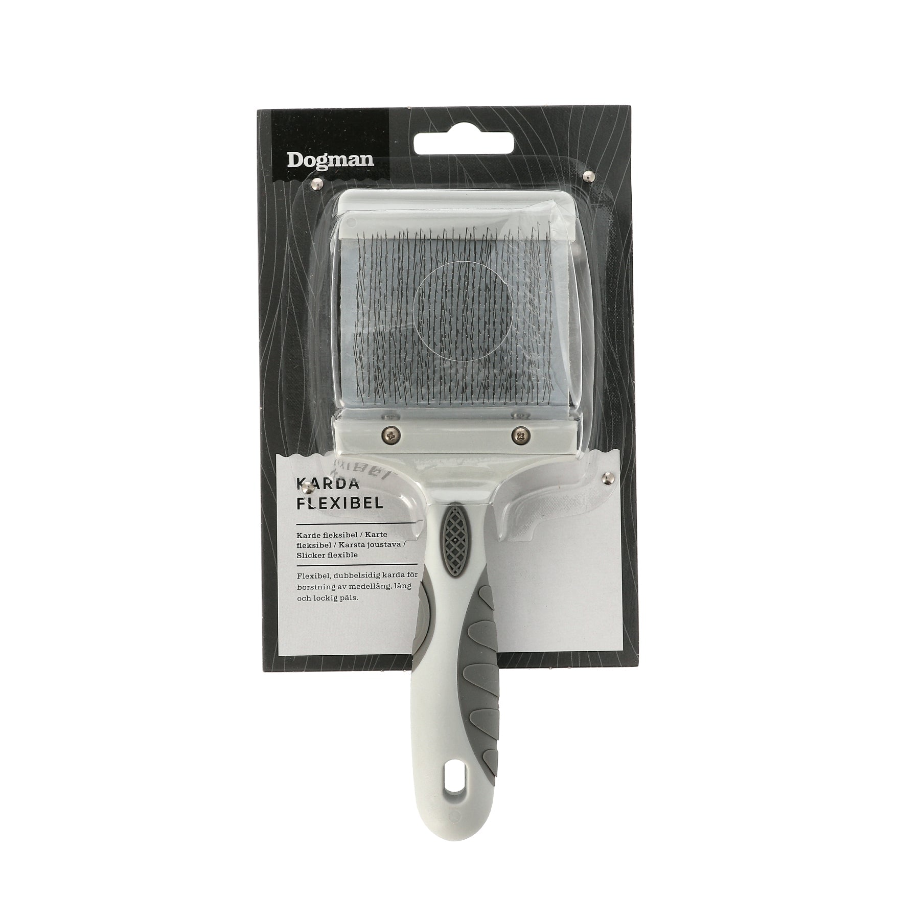 Storlek: L Flexibel, dubbelsidig karda för borstning av medellång, lång och lockig päls. Fjädringen ger mindre slitage på pälsen och är skonsammare för hunden. Storlek: L .