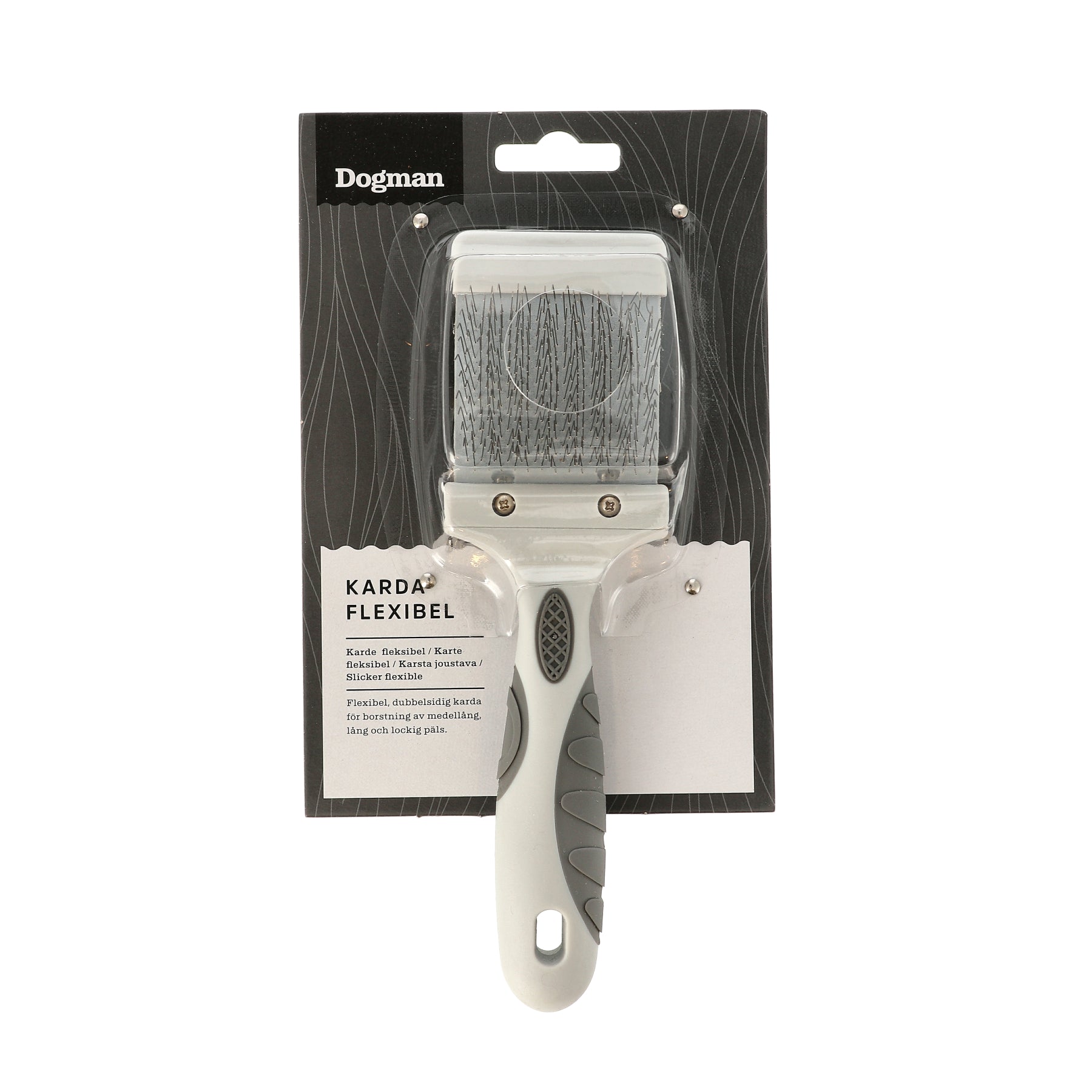 Storlek: S Flexibel, dubbelsidig karda för borstning av medellång, lång och lockig päls. Fjädringen ger mindre slitage på pälsen och är skonsammare för hunden. Storlek: S .