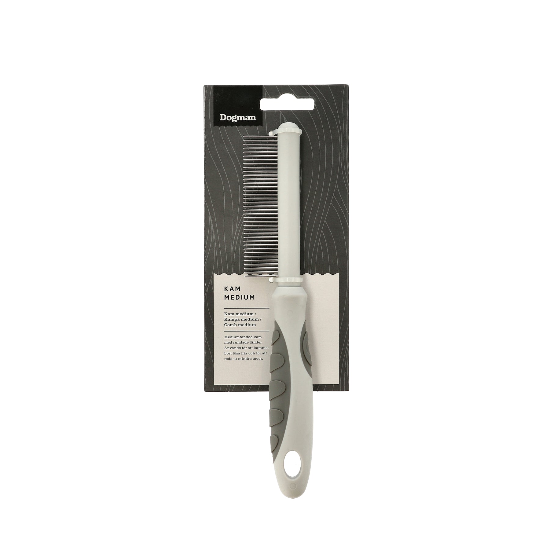 Mediumtandad kam rundade tänder. Används för att kamma bort lösa hår och underull samt för att reda ut mindre tovor. De rundande tänder gör kamningen mer skonsam mot huden. .