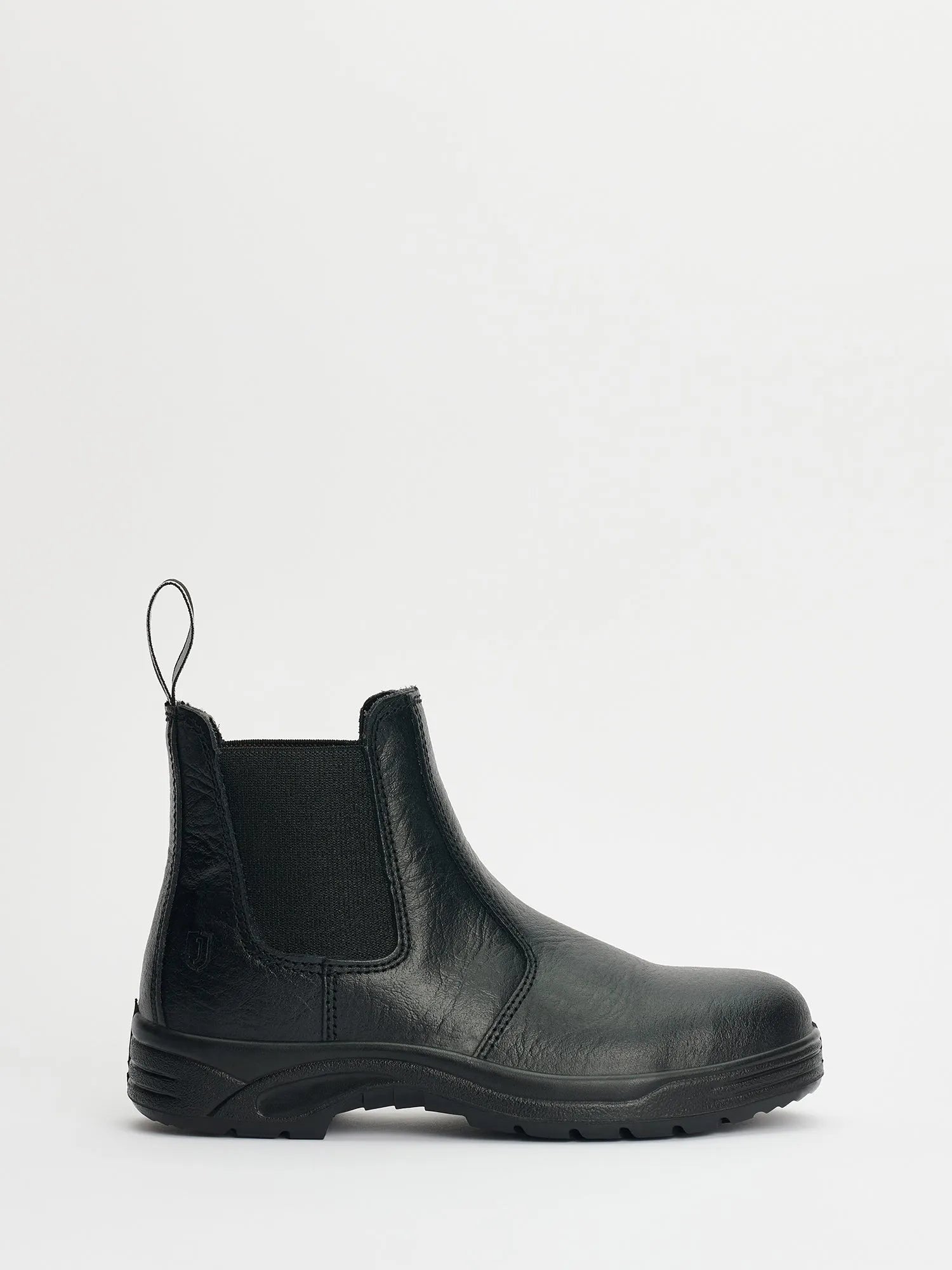 Den svarta färgen och rena designen gör jodhpursen enkel att matcha med ridbyxor, chaps eller arbetskläder. En perfekt balans mellan funktion, säkerhet och stil – skapad för ryttare som kräver mer av sina skor.