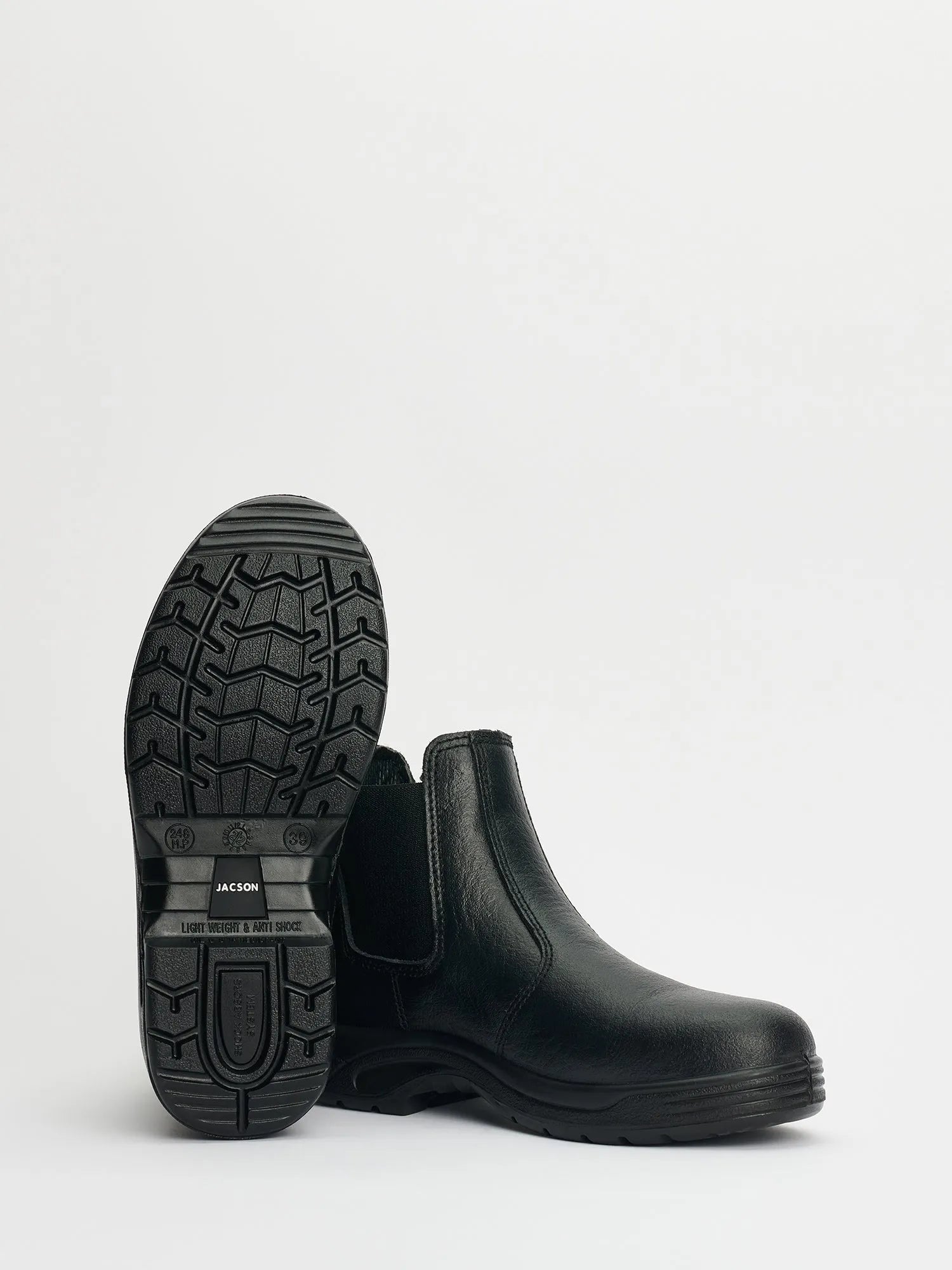 Trots sin robusta konstruktion är Jacson Noa mjuk och bekväm att bära hela dagen. Den ergonomiska sulan ger stöd åt foten, medan de elastiska sidopartierna bidrar till en flexibel passform. Skon är tillverkad i slitstarkt, vattenavvisande material som står emot fukt, smuts och dagligt slitage.