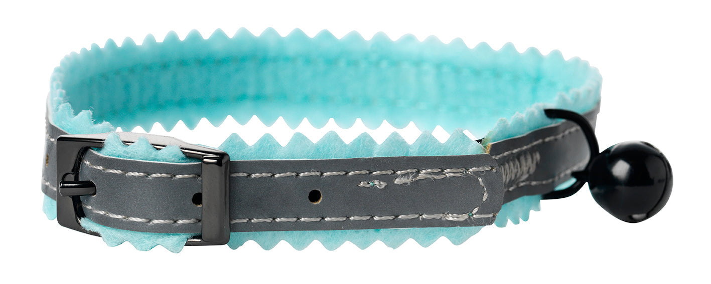 Mjukt katthalsband som syns i mörkret. Bandet är reflekterande och har en stretch-del så att katten lättare kan ta sig loss om den fastnar i halsbandet. Storlek: 30cm Storlek: 30cm .