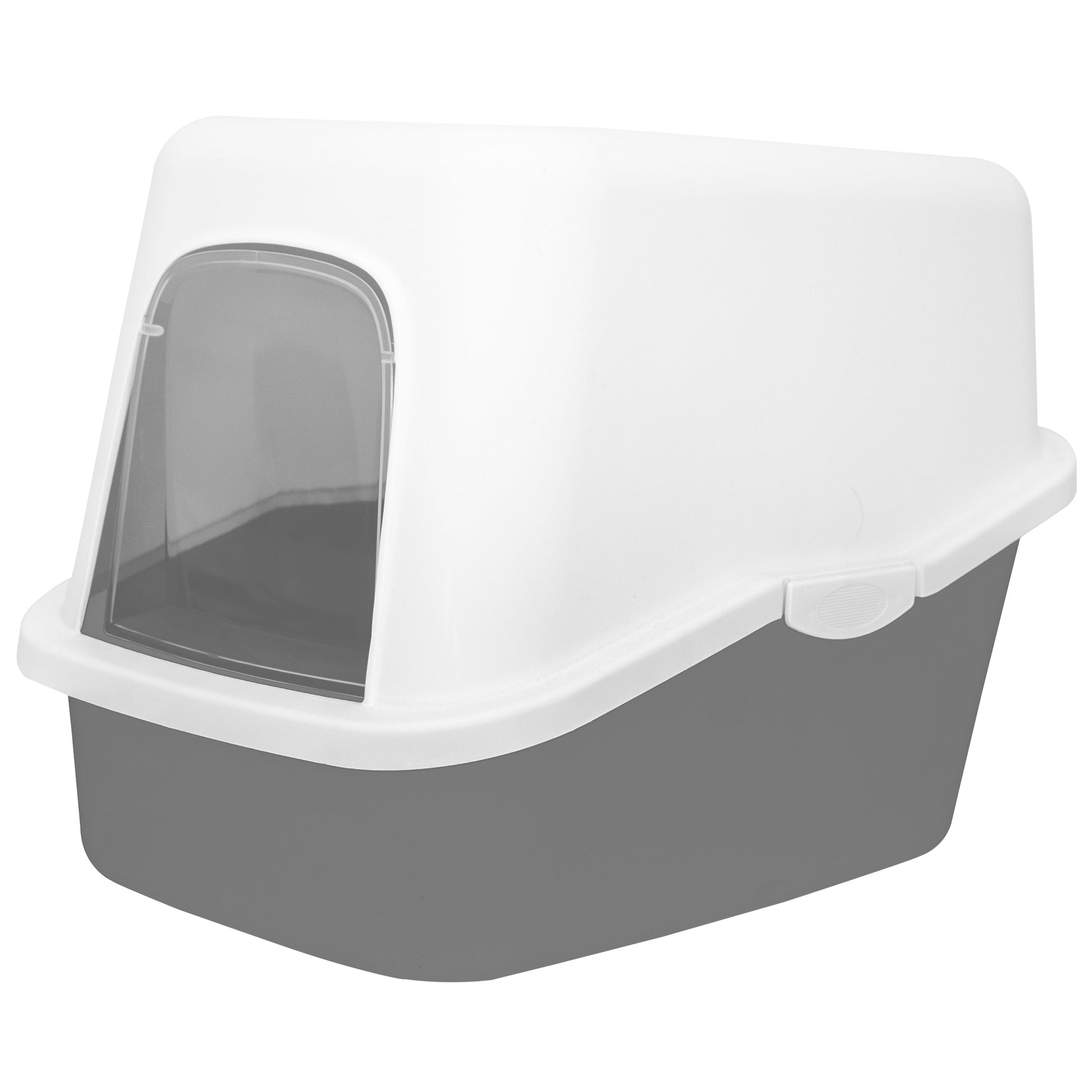 Rejäl toalåda m tak som är lätt att rengöra. Med inbyggt handtag, plastlucka och filter med aktivt kol som minskar att dålig lukt och damm sprider sig från kattlådan. En upphöjd konstruktion som förhindrar läckage om hankatter kissar mot bakväggen. .