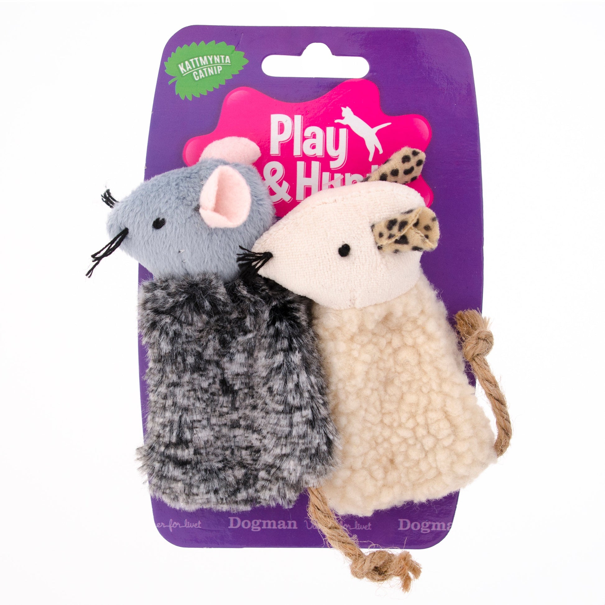 Söta, mjuka små plyschmöss med repsvans. Går att öppna och fylla på med ny kattmynta. Stimulerar kattens naturliga instinkt. Lek är roligast tillsammans och ett bra sätt för att stärka bandet mellan dig och din katt. Storlek: 6cm Storlek: 6cm .