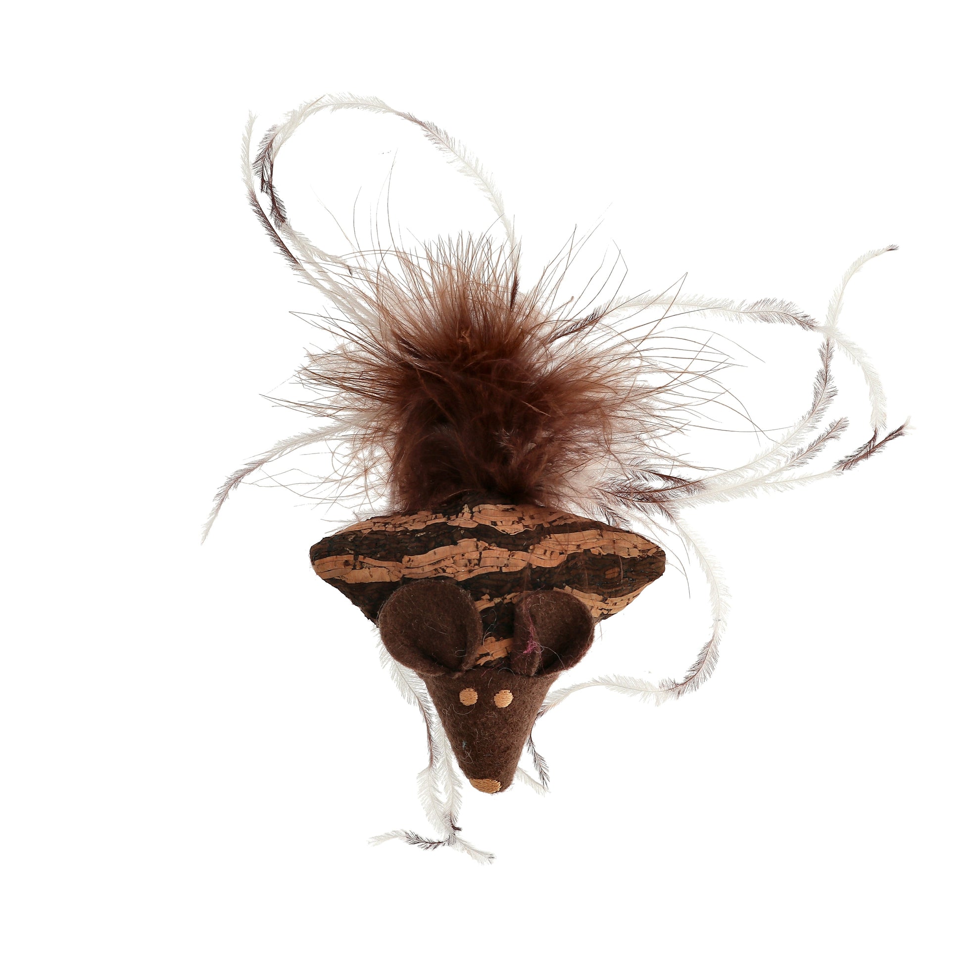 Leksaksmus i filt och kork-look. Mysen innehåller kattmynta och har en fjädersvans. Storlek: 2cm Storlek: 2cm .