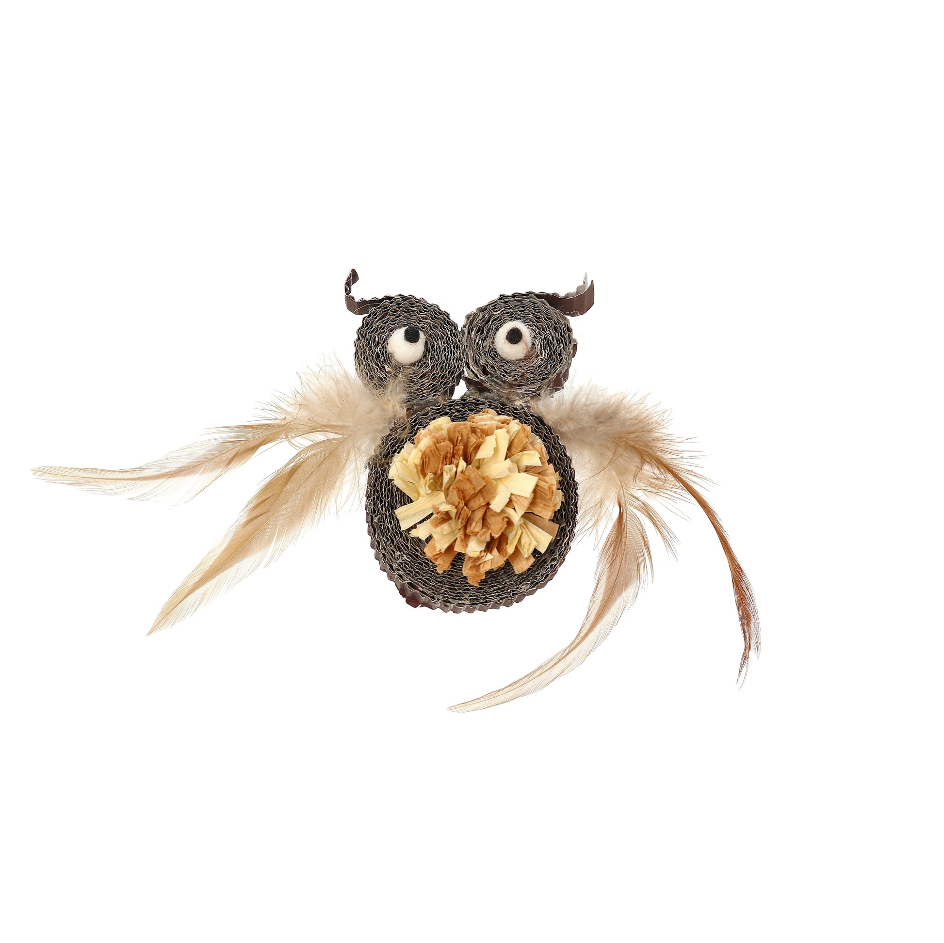 Fräck uggla gjord av papp. Detaljerna är gjorda av fjädrar. Storlek: 5cm Storlek: 5cm .