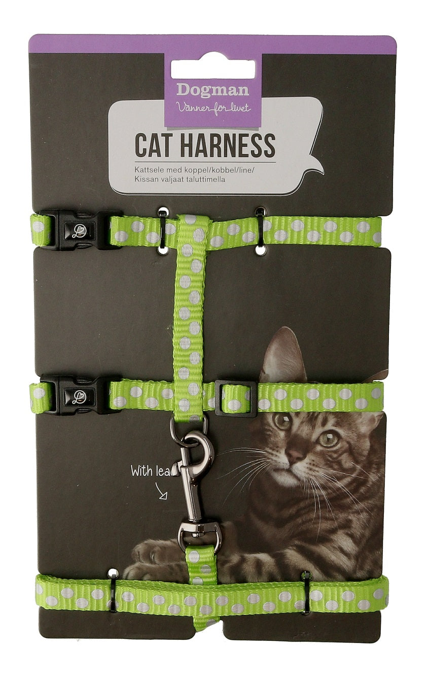 Reflekterande, klassisk sele med koppel. Passar vuxna, normalstora katter eller större kaniner. Ställbar kring bröstkorg och hals. Kopplet är 120cm långt. .