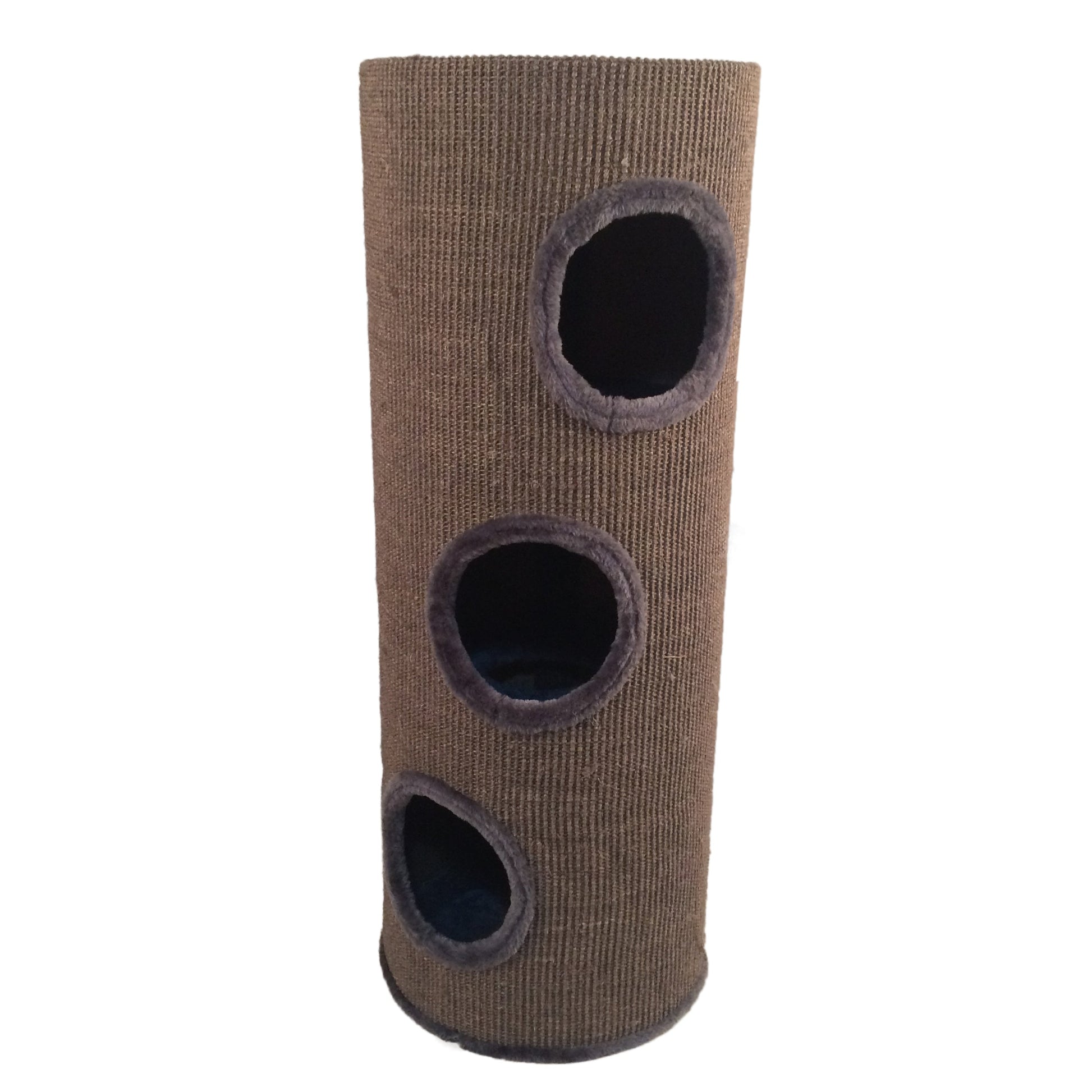 Snygg klöstunna med tre krypin med sisaldel och beige päls inuti. Klöstunnan är riktigt snygg i hemmet och sovplatsen högst upp brukar snabbt bli väldigt populär. .