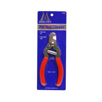 Klotång med stopp och låsningsspärr. Det är viktigt att inte förlita sig på stoppet som lagom längd att klippa klorna på, det kan vara för långt. Använd spärren som ett skydd för bladet när klotången förvaras, så håller den sin skärpa längre. .