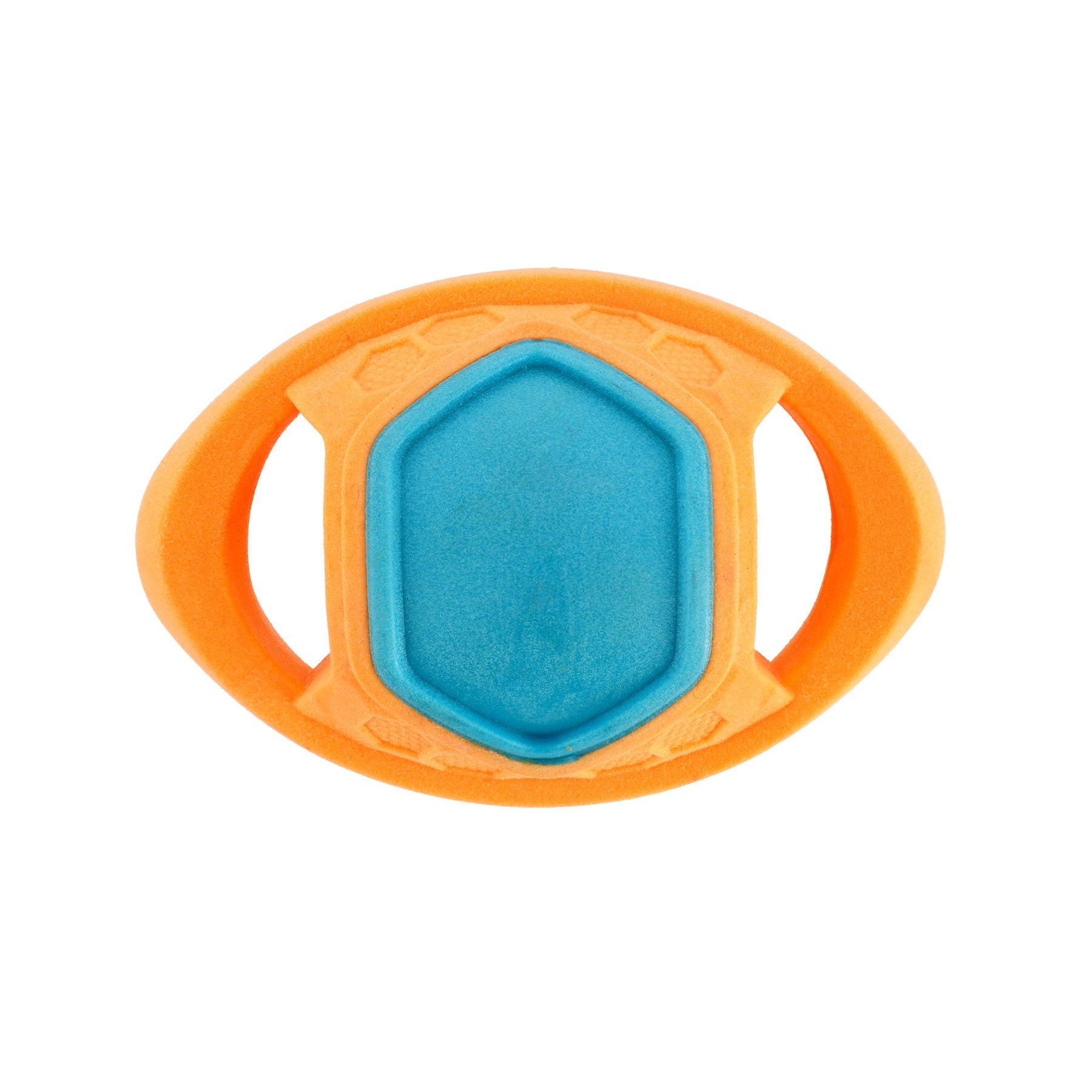 Rugby-liknande boll av TPR foam. Studsar bra på land och flyter perfekt i vatten. Finns öglor på sidorna så att man kan fästa i en lina om man är rädd att bollen flyter iväg. Storlek: 5cm Storlek: 5cm .
