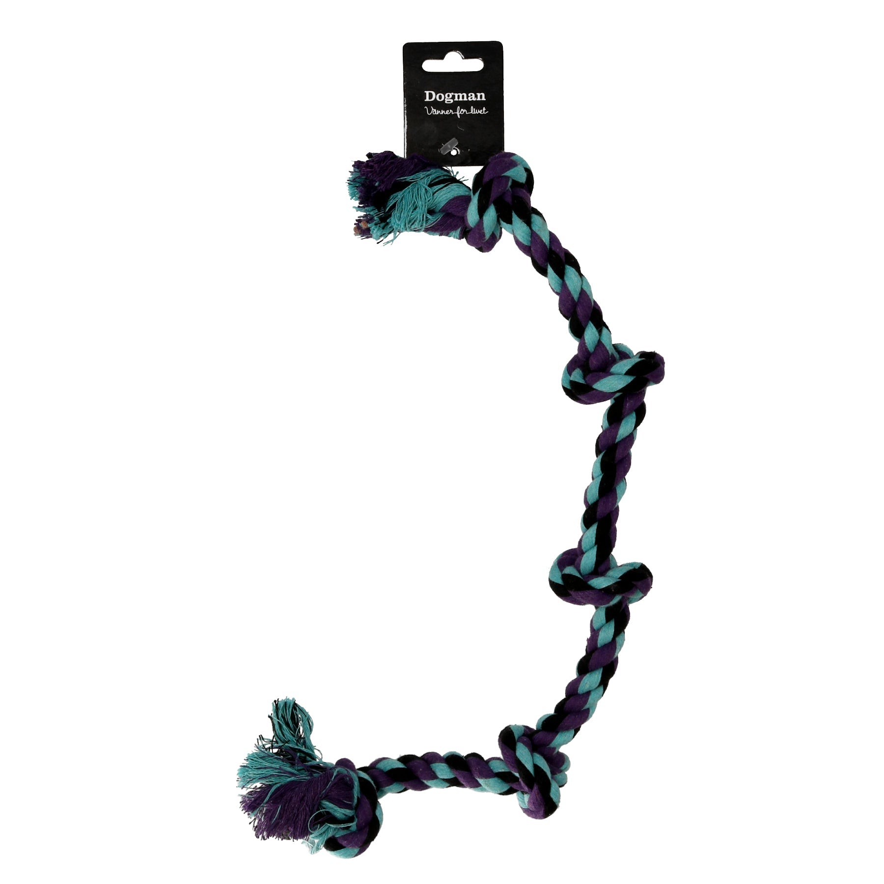 En bra repleksak är en riktig klassiker! Leksaken i tåligt material med fem knutar är perfekt att använda till apportering och draglekar. Lek är roligast tillsammans! Lek är också ett bra sätt att stärka bandet mellan dig och din hund. Storlek: 59cm Storlek: 59cm .