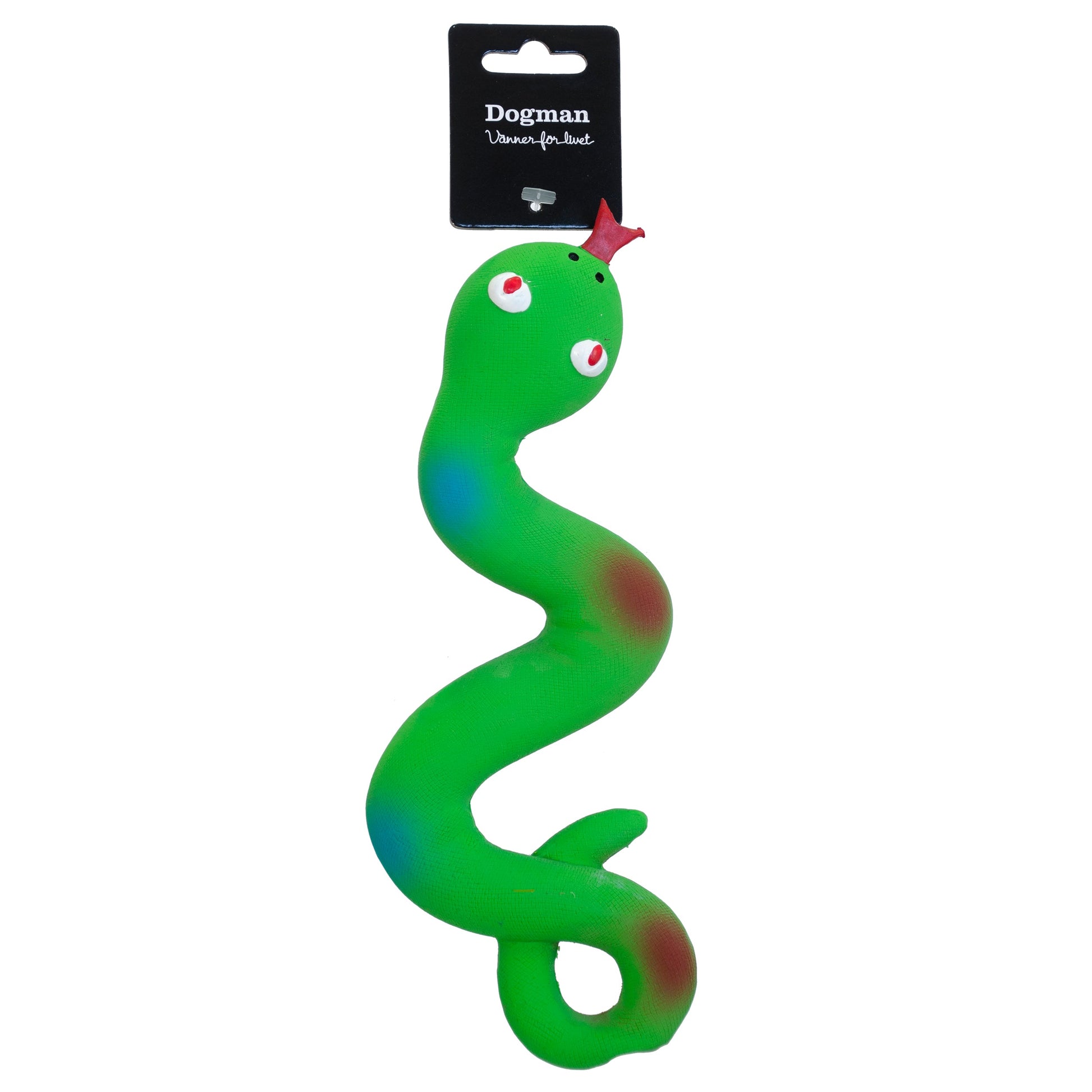 Slingerormen är lika gullig som den är rolig. Leksaken är gjord av latex och har pip som gör den extra kul. Den supersöta ormen kommer i en fräck grön färg. Storlek: 25cm Storlek: 25cm .