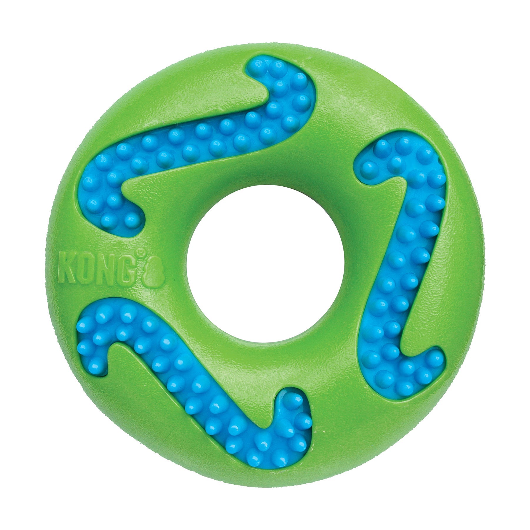 Storlek: L De upphöjda knopparna masserar tänder och tandkött. Olika strukturer och ett slitstarkt material uppmuntrar till tugg och lek. Innehåller pip. Storlek: L .