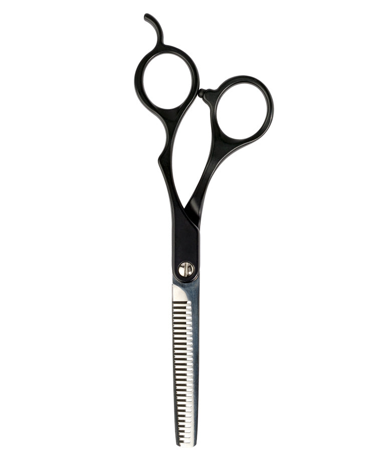 Professionell, ergonomisk och slitstark effileringssax av hög kvalité tillverkad av premium Japansk rostfritt stål. Perfekt för finjustering och för att tunna ur pälsen. .