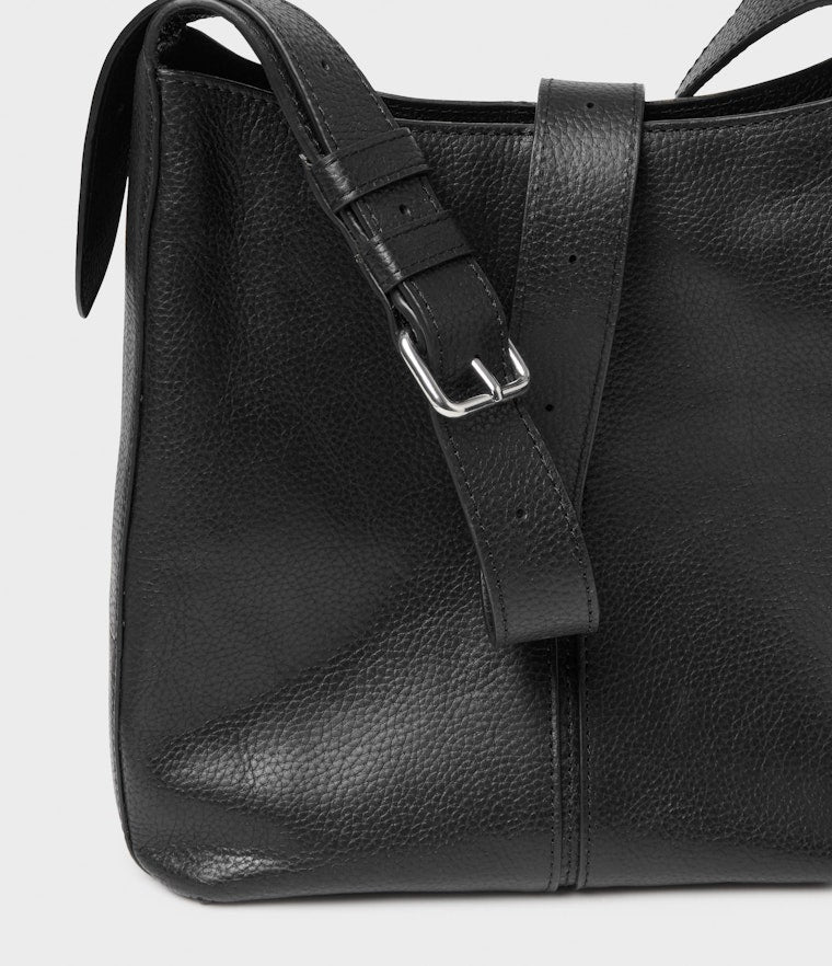 Den justerbara axelremmen i läder kan ställas mellan 59 cm och längre, vilket gör att väskan kan bäras både crossbody för en avslappnad look eller över axeln för en mer klassisk stil.