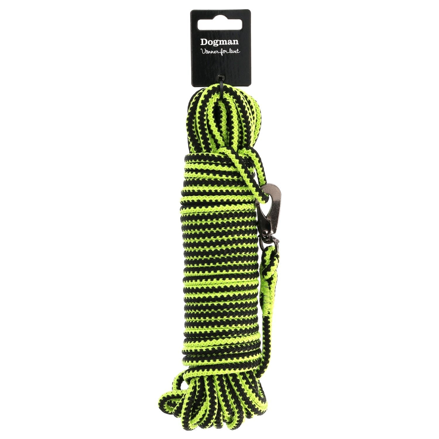 Praktisk flätad spårlina med karbinhake. Perfekt att använda vid motionsträning, spår- och inkallningsövningar av olika slag. Matchar våra selar och övriga produkter i serien Iris Storlek: 15m .
