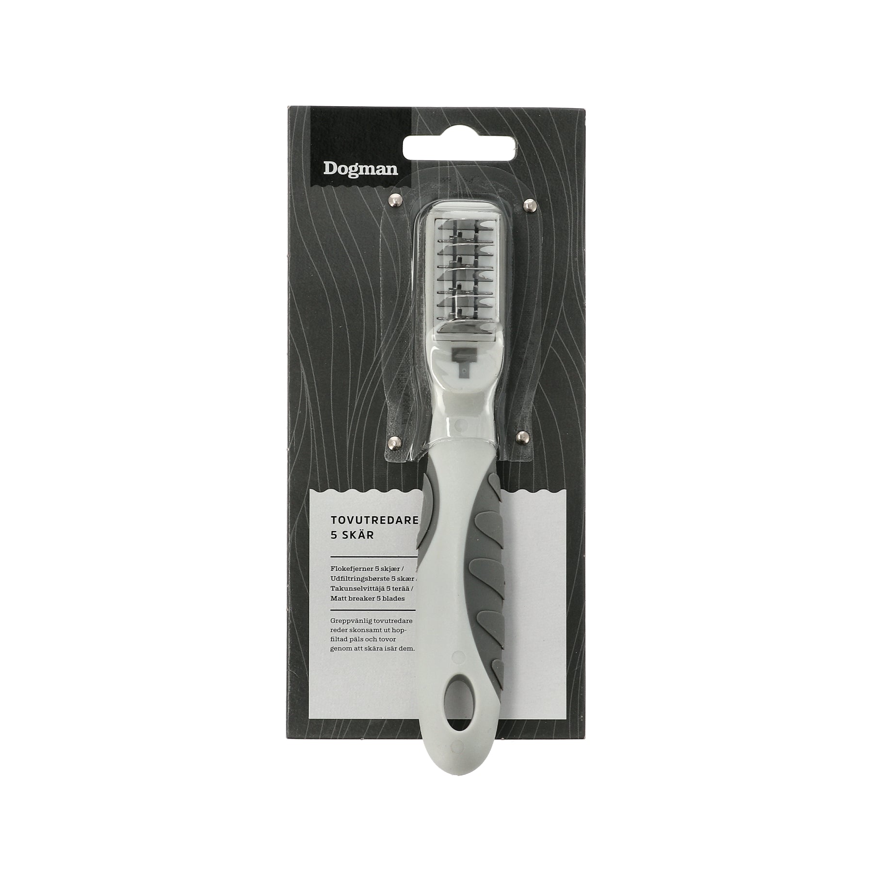 Greppvänlig tovutredare reder skonsamt ut hopfiltad päls och tovor genom att skära isär dem. De korta böjda bladen minskar risken för skador. Arbeta ut tovan i etapper och kamma sedan bort tovresterna med en gles kam. .