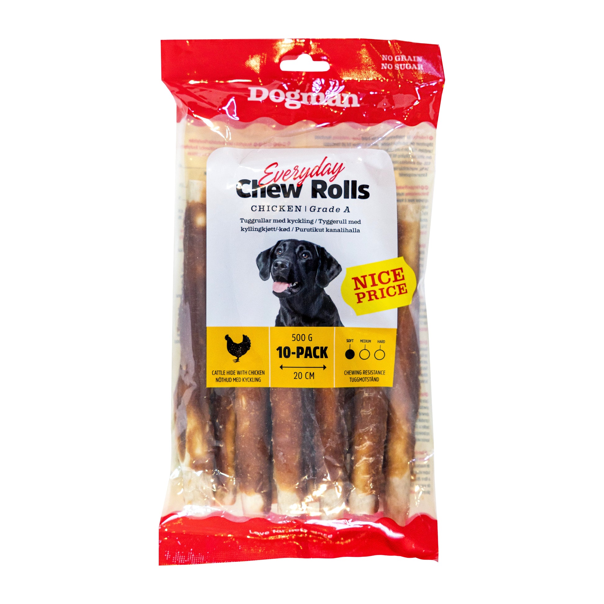 Tuggpinnar med smaskig kyckling. Lätta att tugga och passar därför perfekt till hundar som behöver mindre tuggmotstånd. Ger sysselsättning och tillgodoser tuggbehovet. Håll alltid hunden under uppsikt när den tuggar på tuggben. Med Grade A-kyckling. Storlek: 20cm Storlek: 20cm .